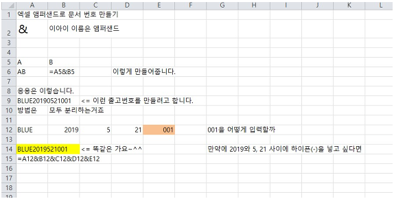 엑셀 앰퍼샌드 활용,사용방법(문서번호 만드는법)